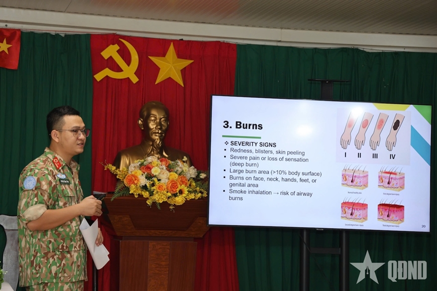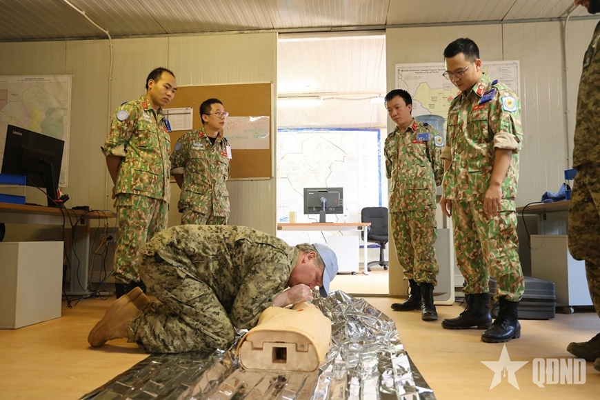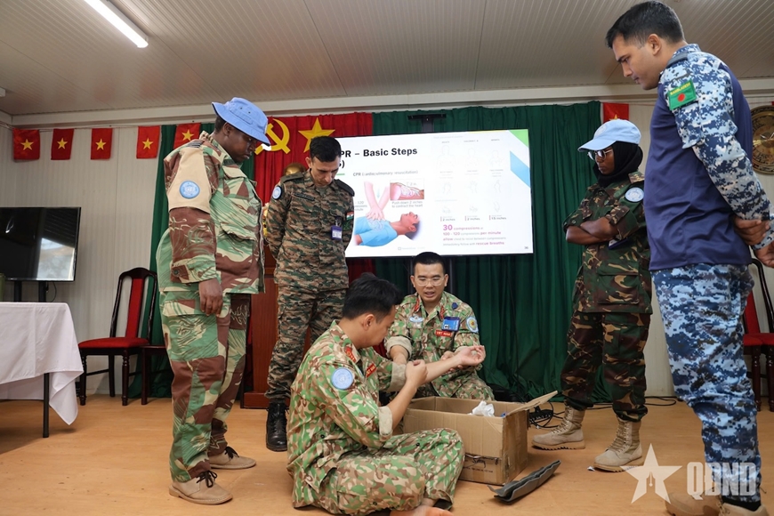 Trong ba buổi huấn luyện, bằng phương pháp kết hợp chặt chẽ giữa lý thuyết và thực hành, các giảng viên Việt Nam đã truyền đạt nội dung theo đúng quy trình chuyên môn, bảo đảm tính chuyên nghiệp, trực quan, dễ hiểu. Qua đó, học viên nắm vững kỹ năng xử trí tình huống khẩn cấp, đặc biệt là kỹ thuật hồi sức tim phổi trong môi trường thực hiện nhiệm vụ gìn giữ hòa bình thường xảy ra các tình huống bất ngờ.