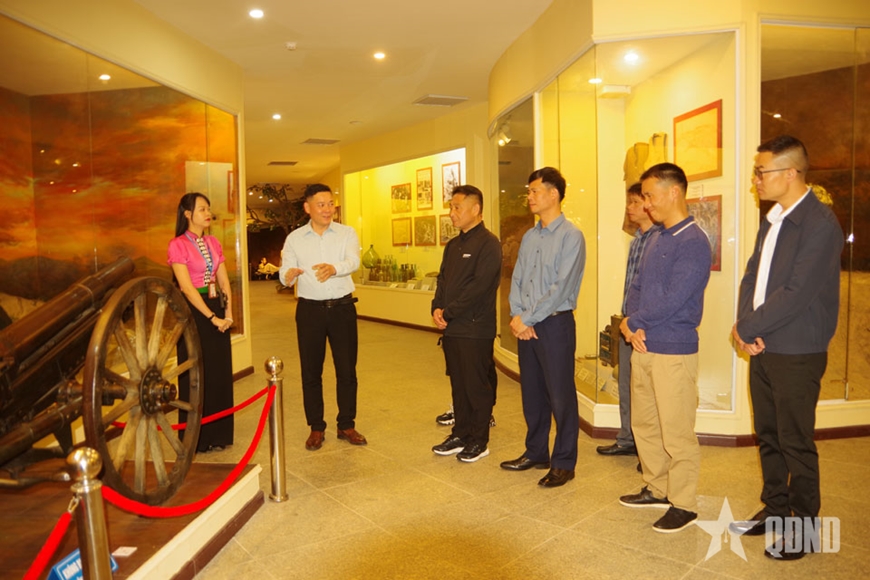 | Đoàn đại biểu Bộ đội Biên phòng khu vực Mông Tự tham quan các điểm di tích lịch sử tại phường Điện Biên Phủ. |