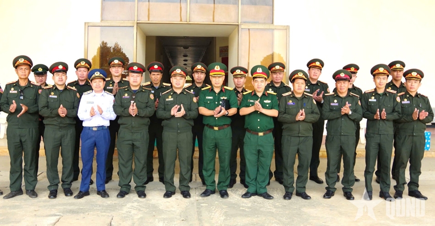 Cán bộ Binh đoàn 15 và các học viên Bộ Quốc phòng Lào chụp ảnh lưu niệm.