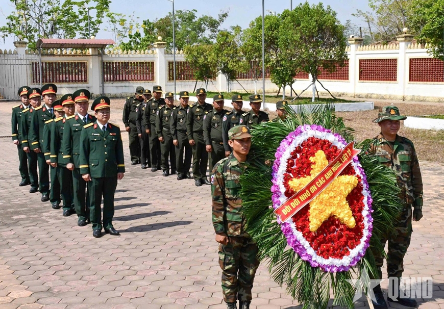 Đoàn công tác Binh đoàn 15 đến dâng hương tại Tượng đài tưởng niệm các Anh hùng liệt sĩ quân tình nguyện Việt Nam tại thành phố Stung Treng.