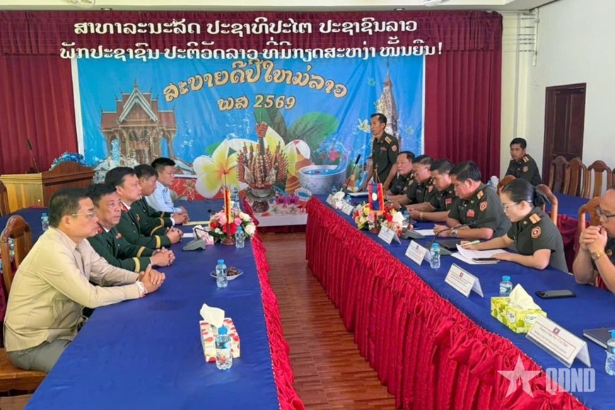 | Quang cảnh buổi chúc Tết Bunpimay cán bộ, chiến sĩ Bộ CHQS tỉnh Bolikhamsai. |