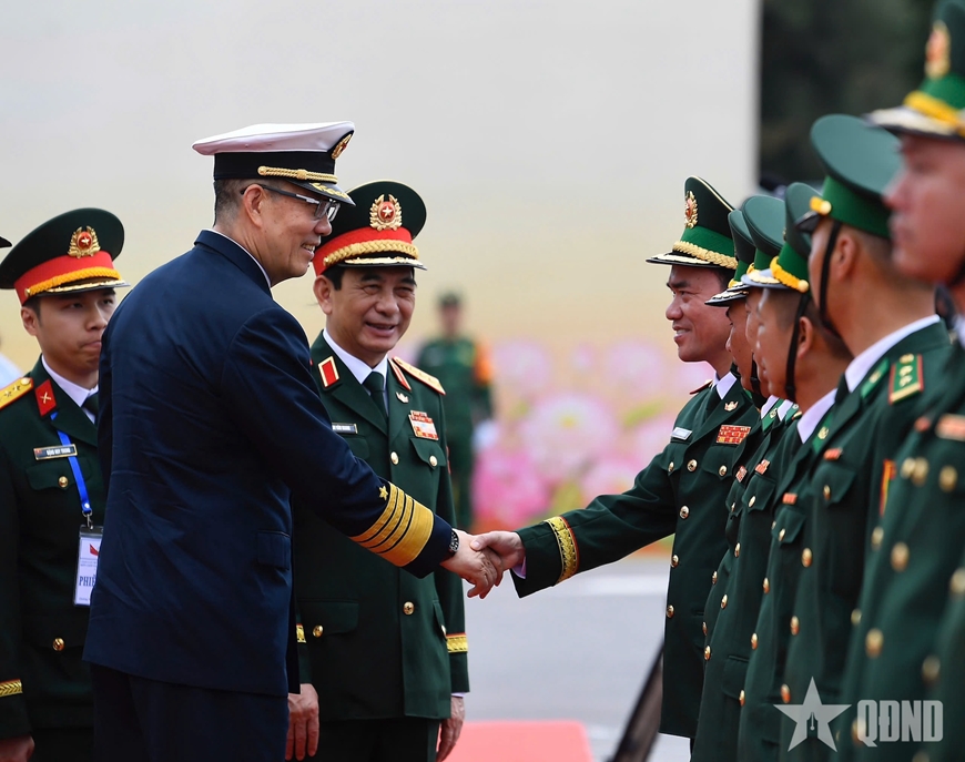 | Đại tướng Phan Văn Giang và Thượng tướng Đổng Quân cùng các đại biểu. |
