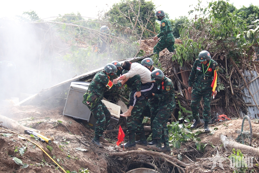 Đối với nội dung tìm kiếm, cứu nạn giúp đỡ người gặp nạn do sạt lở đất, nhận được báo cáo có sạt lở đất, lực lượng Quân đội ba nước tiến hành thu thập thông tin, thống kê công dân ở khu vực xảy ra thiên tai; tìm kiếm, cứu nạn và giúp đỡ người gặp nạn do sạt lở đất; hỗ trợ y tế đối với người bị thương và giải quyết chính sách đối với người tử vong; đưa người gặp nạn bị thương nặng đến bệnh viện hậu phương bằng máy bay trực thăng.