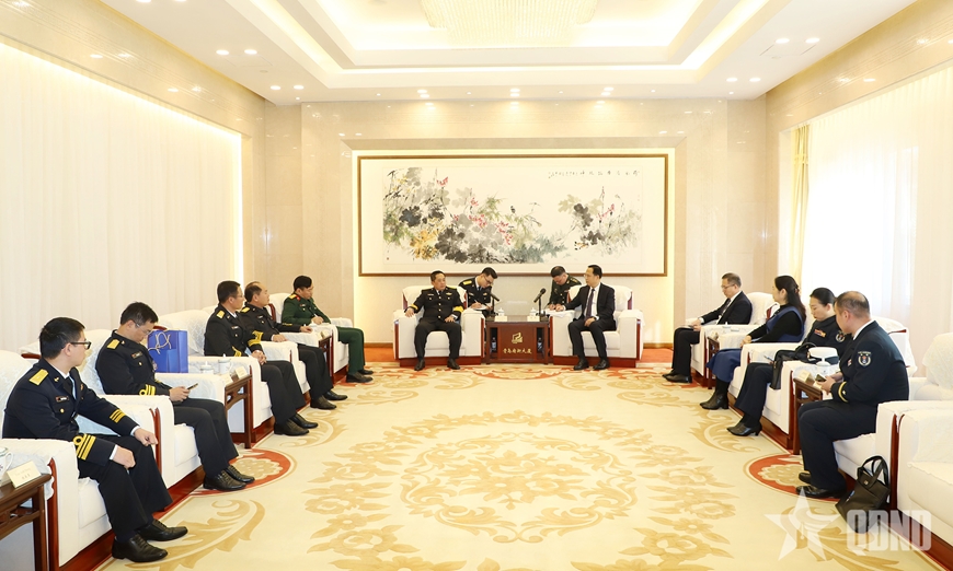 Chuẩn đô đốc Uông Mộng Long, Phó tham mưu trưởng Hạm đội Bắc Hải tiếp đoàn công tác tại trụ sở Hạm đội.