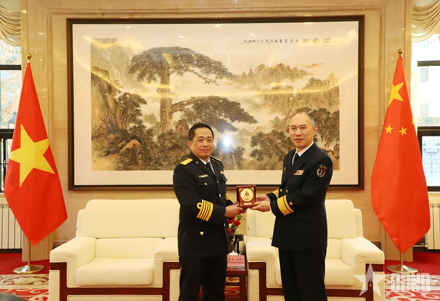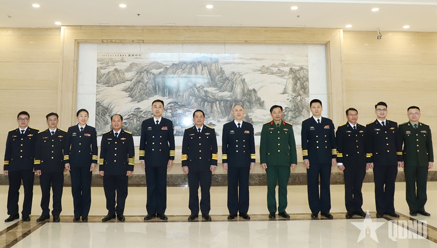 Đoàn công tác Hải quân nhân dân Việt Nam và lãnh đạo Hạm đội Bắc Hải tại trụ sở Hạm đội.