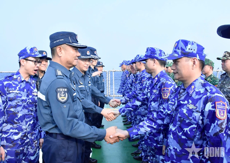 | Đoàn công tác của Cảnh sát biển Việt Nam và Cảnh sát biển Trung Quốc gặp gỡ. |