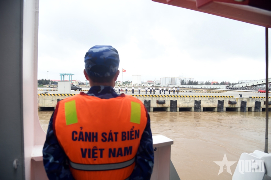 | Cảnh sát biển Việt Nam thực hiện nghi thức chào cảng. |