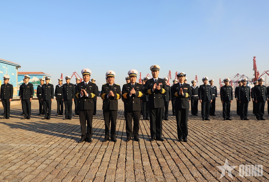 Các sĩ quan, thủy thủ của Hạm đội Bắc Hải tham gia lễ tiễn Tàu 015-Trần Hưng Đạo.