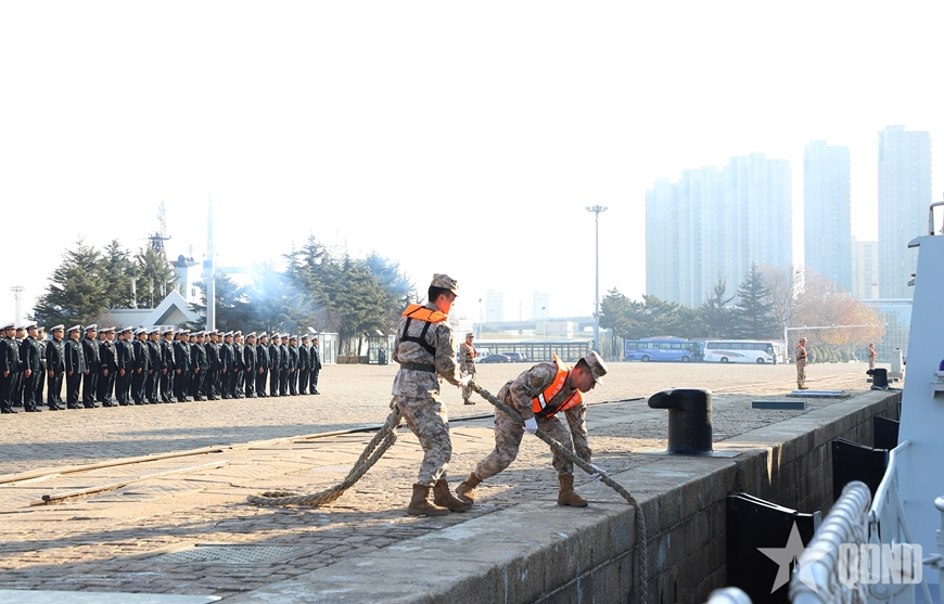 Lễ tiễn Tàu 015-Trần Hưng Đạo và đoàn công tác Hải quân nhân dân Việt Nam được tổ chức trang trọng tại cầu cảng, dưới sự chủ trì của Đại diện Bộ Tham mưu Hạm đội Bắc Hải, Hải quân Quân Giải phóng nhân dân Trung Quốc.
