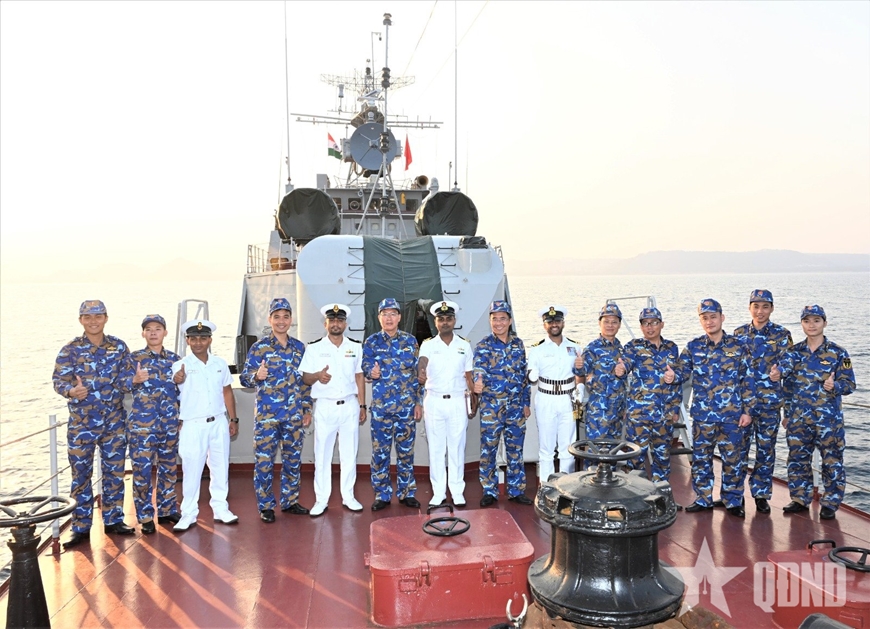 | Cán bộ, chiến sĩ Tàu 17 và đoàn Hải quân Ấn Độ trên tàu 17. |