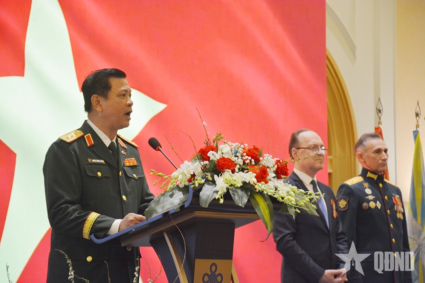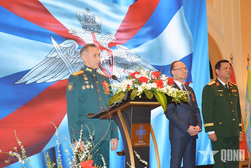 Phát biểu tại buổi lễ, thay mặt lãnh đạo Bộ Quốc phòng Việt Nam, Thượng tướng Nguyễn Trường Thắng chúc mừng Đại sứ và toàn thể cán bộ, nhân viên Đại sứ quán Nga, cơ quan Tùy viên Quốc phòng Nga tại Việt Nam và qua Đại sứ gửi tới toàn thể nhân dân, Bộ Quốc phòng LB Nga những lời chúc mừng tốt đẹp nhất.