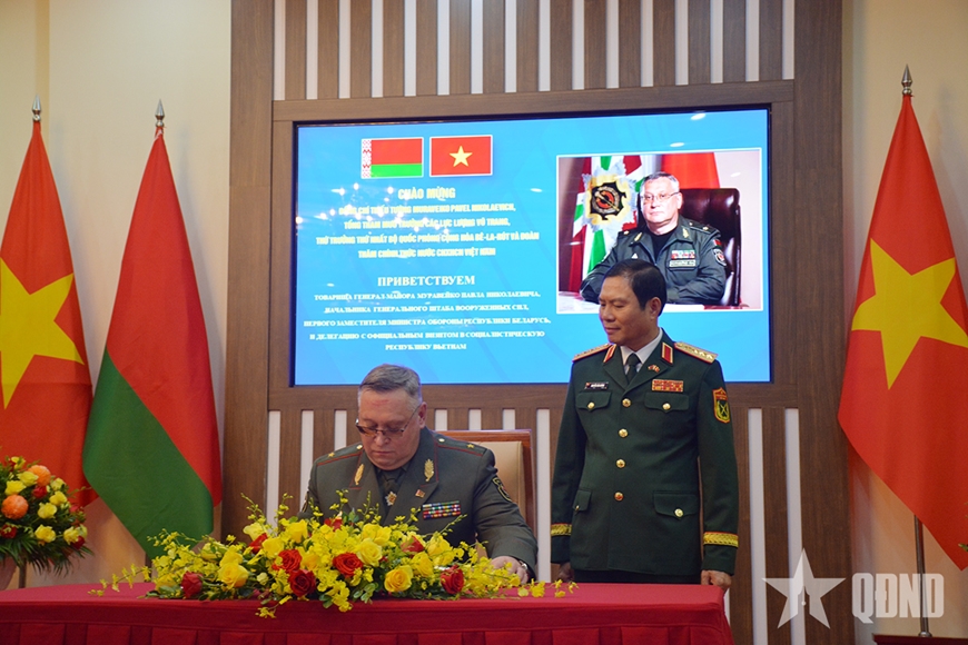 Nhân dịp này, Thiếu tướng Pavel Muraveiko cảm ơn Bộ Quốc phòng Việt Nam đã tiếp nhận quân nhân Belarus sang học tiếng Việt, nhấn mạnh đây là cơ hội để phía Belarus tăng cường hiểu biết về văn hóa, đất nước, con người Việt Nam, đồng thời thúc đẩy tình hữu nghị giữa hai nước.