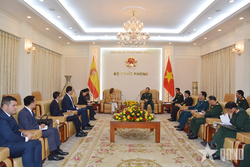 Về phần mình, Đại sứ Carmen Cano De Lasala cảm ơn lãnh đạo Bộ Quốc phòng Việt Nam đã dành thời gian đón tiếp; nhấn mạnh năm 2025 là dấu mốc quan trọng trong quan hệ hợp tác Việt Nam - Tây Ban Nha. Đại sứ khẳng định Việt Nam là đối tác tin cậy của Tây Ban Nha và bày tỏ mong muốn trong thời gian tới, quan hệ hợp tác quốc phòng song phương phát triển ngày càng sâu sắc trên nhiều lĩnh vực, nhất là trong công nghiệp quốc phòng, gìn giữ hòa bình Liên hợp quốc…