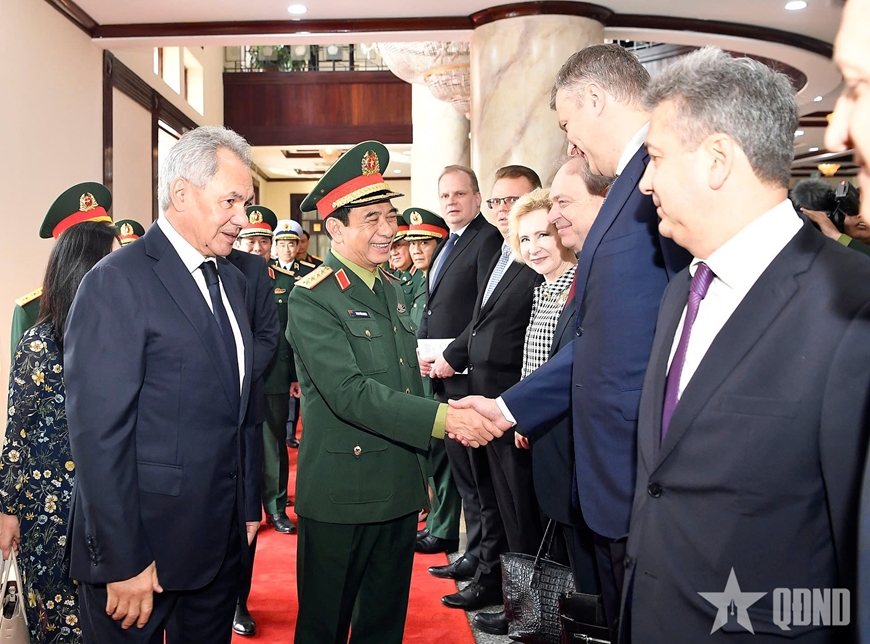 | Đại tướng Phan Văn Giang đón Thư ký Hội đồng An ninh LB Nga Sergey Shoigu. |