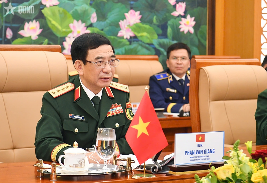 | Đại tướng Phan Văn Giang tại hội đàm. Ảnh: TUẤN HUY |