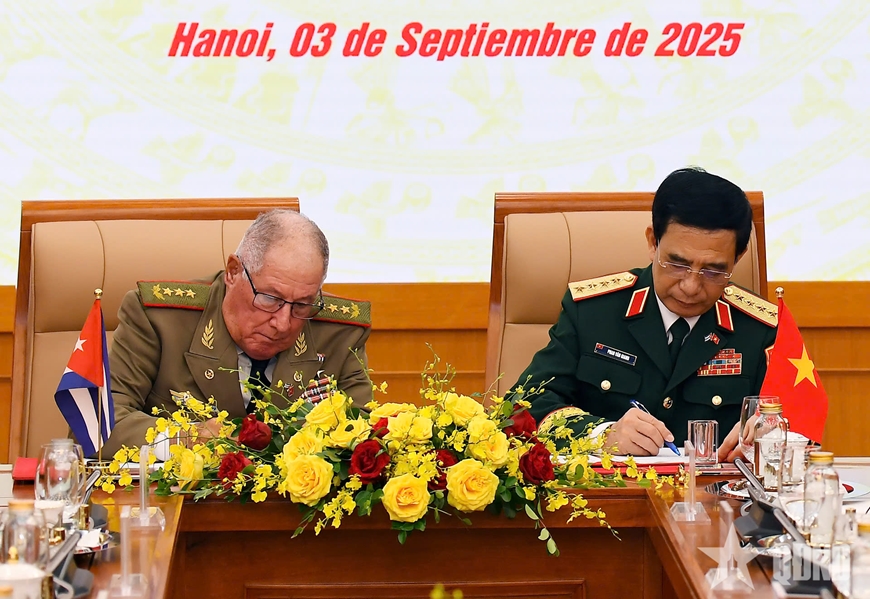 Kết thúc hội đàm, hai bên đã ký Kế hoạch hợp tác quốc phòng 3 năm giai đoạn 2026-2028 giữa Bộ Quốc phòng Việt Nam và Bộ các Lực lượng vũ trang cách mạng Cuba.