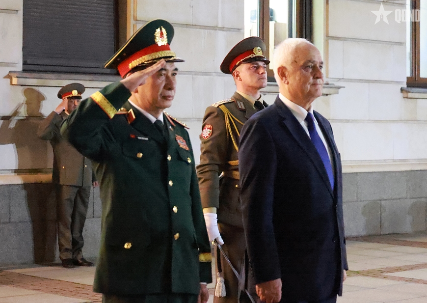 Bộ trưởng Bộ Quốc phòng Bulgaria Atanas Dimitrov Zapryanov chủ trì lễ đón Bộ trưởng Phan Văn Giang. |