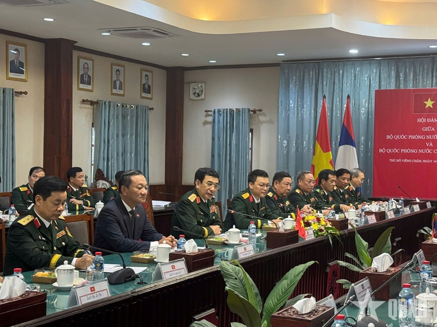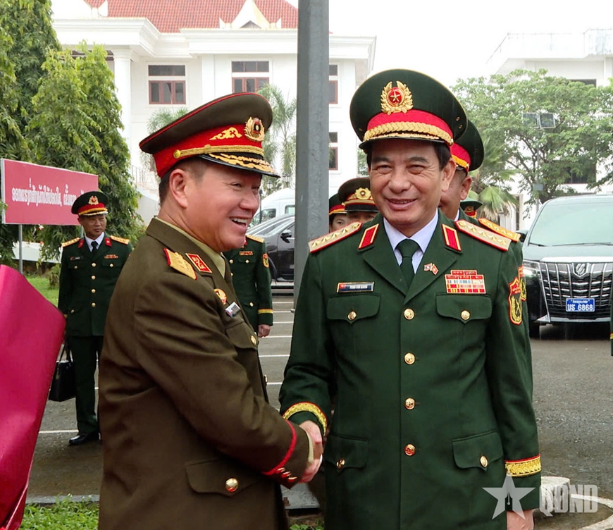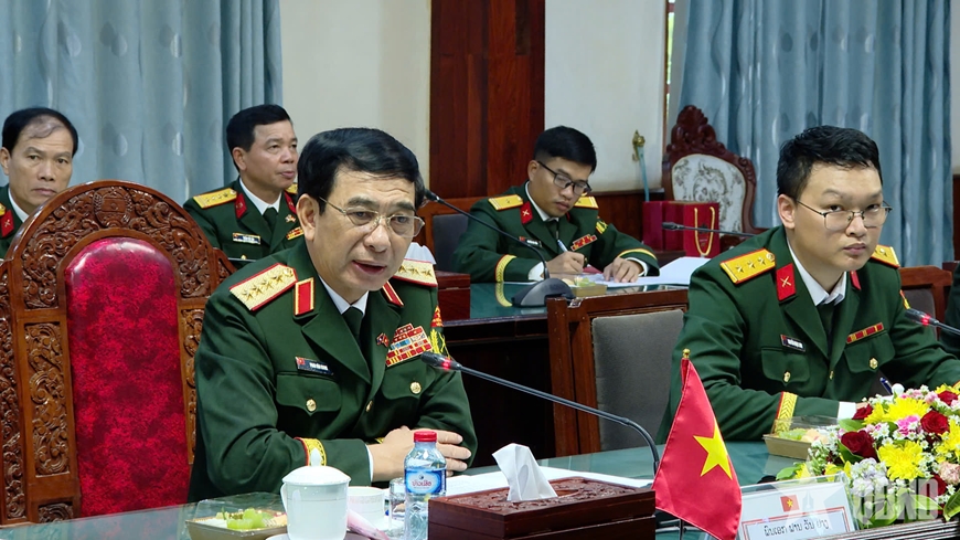 Tại hội đàm, Đại tướng Phan Văn Giang và Thượng tướng Khamliang Outhakaysone vui mừng nhận thấy, các nội dung trong Nghị định thư hợp tác giai đoạn 2025-2029 và Kế hoạch hợp tác năm 2025 đã được cơ quan hai bên phối hợp, triển khai hiệu quả, thực chất trên các mặt, như phối hợp chặt chẽ, làm tốt công tác tuyên truyền, giáo dục về mối quan hệ hữu nghị vĩ đại Việt Nam - Lào; trao đổi thông tin, tình hình, qua đó tham mưu hiệu quả với lãnh đạo Đảng, Nhà nước về những vấn đề chiến lược tác động đến quốc phòng, an ninh mỗi nước; hợp tác quân, binh chủng, hậu cần, kỹ thuật, công nghiệp quốc phòng được quan tâm thúc đẩy.