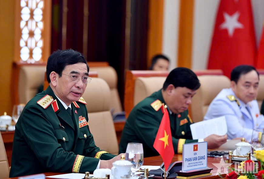 Đại tướng Phan Văn Giang tại hội đàm. Ảnh: TRỌNG HẢI |
