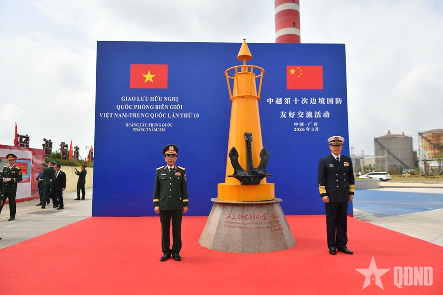 Tiếp tục các hoạt động tại Trung Quốc trong khuôn khổ Giao lưu hữu nghị quốc phòng biên giới Việt Nam - Trung Quốc lần thứ 10, Đại tướng Phan Văn Giang, Ủy viên Bộ Chính trị, Phó bí thư Quân ủy Trung ương, Bộ trưởng Bộ Quốc phòng và Thượng tướng Đổng Quân, Bộ trưởng Bộ Quốc phòng Trung Quốc cùng đoàn đại biểu hai nước tới tham quan Bia kỷ niệm “Điểm khởi đầu của đường mòn Hồ Chí Minh trên biển” tại bến cảng du lịch Phòng Thành, Quảng Tây.