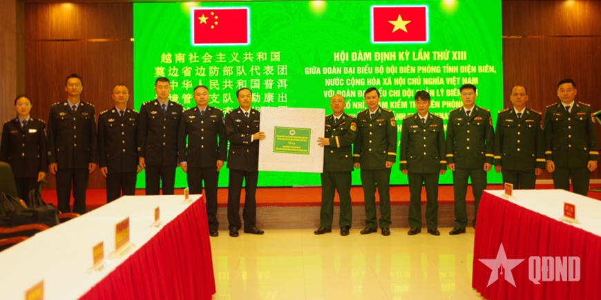 Đại tá Phan Văn Hóa, Chỉ huy trưởng Ban Chỉ huy BĐBP tỉnh Điện Biên và đồng chí Dương Xuân Lâm, Chính ủy Chi đội Quản lý biên giới Phổ Nhĩ (Trung Quốc), đồng chủ trì hội đàm.