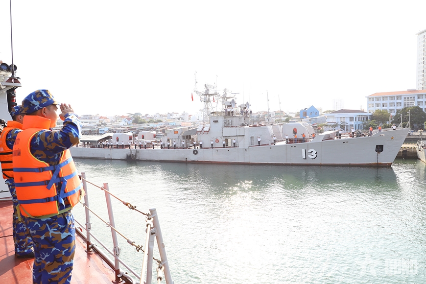 | Tàu 17 và đoàn công tác chào cảng rời bến, lên đường thực hiện nhiệm vụ. |