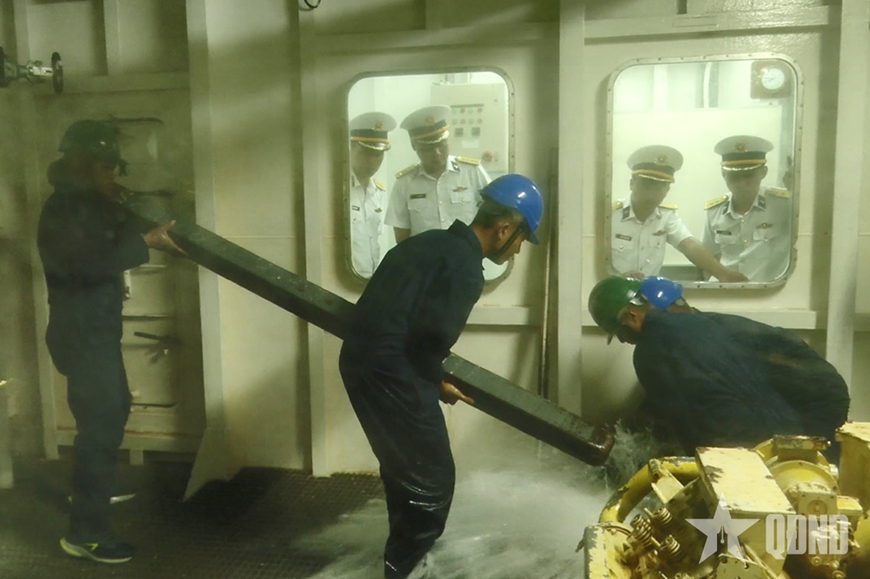 Cán bộ, nhân viên Trung tâm đã trực tiếp trình diễn các khoa mục huấn luyện chống cháy, chống chìm với nhiều cấp độ phức tạp, mô phỏng sát thực tế điều kiện khai thác, sử dụng tàu chiến hiện đại trong môi trường biển khắc nghiệt.