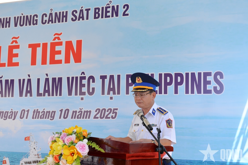 Tại lễ tiễn tàu, Đại tá Lê Huy nhấn mạnh: Đây là chuyến thăm đầu tiên của tàu Cảnh sát biển Việt Nam tới Philippines trong năm 2025, thể hiện quyết tâm và thiện chí của hai lực lượng trong việc tăng cường hợp tác, thúc đẩy quan hệ hữu nghị truyền thống, nâng cao hiểu biết và tin cậy lẫn nhau. Hoạt động mang ý nghĩa quan trọng sẽ góp phần hiện thực hóa cam kết của Việt Nam và Philippines về xây dựng vùng biển hòa bình, an ninh, an toàn, hợp tác và phát triển bền vững. Đồng thời là hoạt động nhằm đáp lại những tình cảm tốt đẹp trong chuyến tàu BRP Gabriela Silang (OPV-8301) của Lực lượng Bảo vệ bờ biển Philippines thăm và làm việc với Cảnh sát biển Việt Nam tại TP Đà Nẵng từ ngày 14 đến 17-4 vừa qua.
