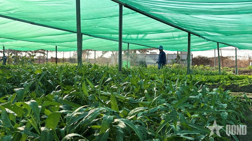 | Vườn rau xanh của lính "mũ nồi xanh" Việt Nam gây ấn tượng mạnh với đoàn kiểm tra về tinh thần vượt khó. Ảnh: HẢI YẾN |