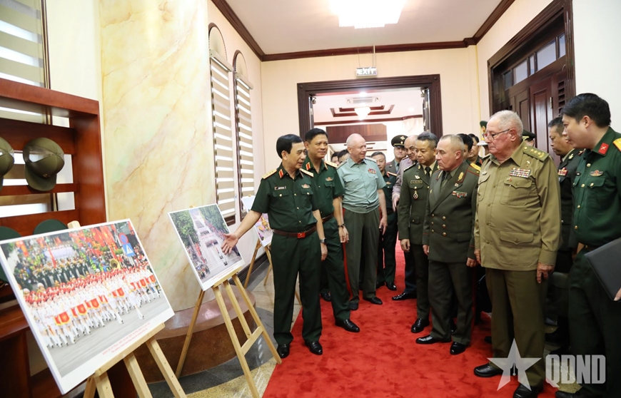 Đại tướng Phan Văn Giang, Ủy viên Bộ Chính trị, Phó bí thư Quân ủy Trung ương, Bộ trưởng Bộ Quốc phòng và lãnh đạo quân đội các nước sang tham dự Lễ kỷ niệm 80 năm Cách mạng Tháng Tám thành công và Quốc khánh nước Cộng hòa xã hội chủ nghĩa Việt Nam. Ảnh: MẠNH HÙNG |