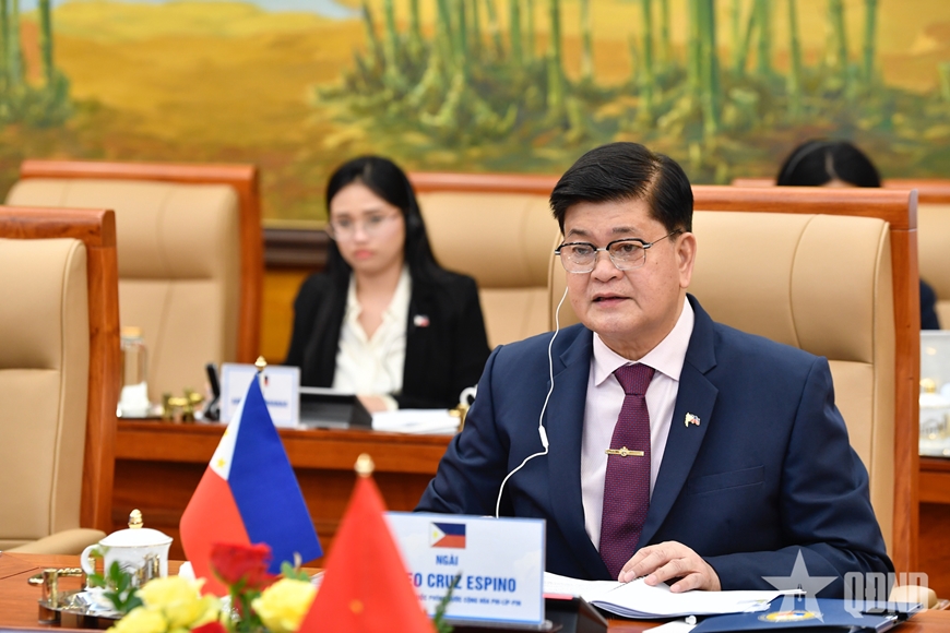 Về phần mình, ngài Irineo C.Espino gửi lời chia buồn sâu sắc trước những thiệt hại về người và tài sản do bão lũ gây ra tại Việt Nam. Ngài Irineo C.Espino nhấn mạnh 2025 là dấu mốc quan trọng trong quan hệ song phương, đánh dấu 10 năm thiết lập quan hệ đối tác chiến lược giữa Philippines và Việt Nam; nêu rõ trong những năm qua, quan hệ hợp tác song phương ngày càng chặt chẽ trên các lĩnh vực, trong đó có quốc phòng. Ngài Irineo C.Espino cho biết, hướng tới kỷ niệm 50 năm thiết lập quan hệ ngoại giao giữa hai nước trong năm 2026, Philippines mong muốn thúc đẩy hơn nữa hợp tác với Việt Nam. Ngài Irineo C.Espino đánh giá cao ý nghĩa Đối thoại chính sách quốc phòng Việt Nam-Philippines lần thứ 7 cũng như vai trò và đóng góp của Việt Nam trong khuôn khổ ADMM và ADMM+.