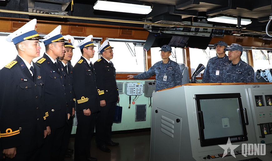 Tham quan Tàu 015-Trần Hưng Đạo và Tàu Munmu The Great, các sĩ quan, thủy thủ hai bên đã được nghe và xem giới thiệu về hoạt động của hai tàu trong thời gian vừa qua và chia sẻ một số kinh nghiệm đi biển dài ngày.