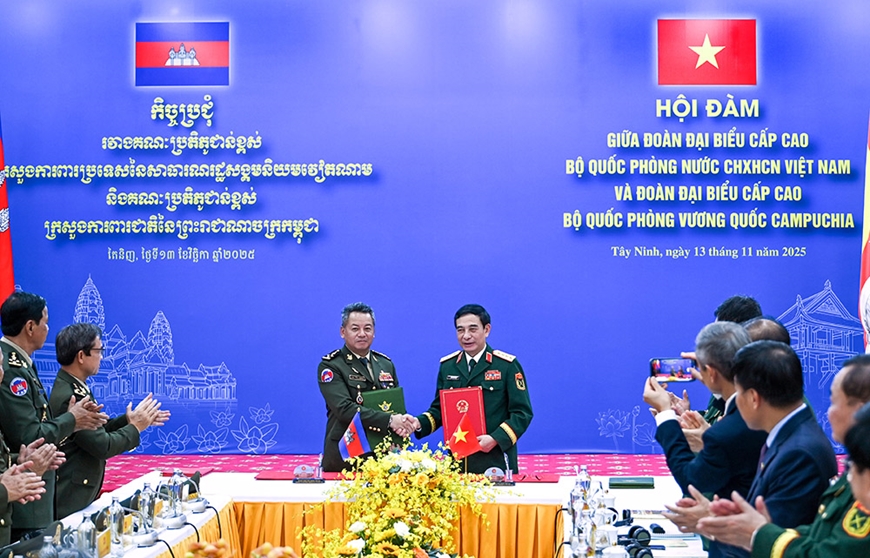Tại hội đàm, hai bên cũng trao đổi tình hình thế giới, khu vực cùng quan tâm. Kết thúc hội đàm, Đại tướng Phan Văn Giang và Đại tướng Tea Seiha đã ký Kế hoạch hợp tác năm 2026, Bản ghi nhớ về tăng cường hợp tác trong lĩnh vực đào tạo, tập huấn nguồn nhân lực và Thỏa thuận về hợp tác biên phòng; chứng kiến trao Biên bản ký kết nghĩa giữa Đồn Biên phòng Cửa khẩu quốc tế Mộc Bài/Việt Nam và Ban chỉ huy Hiến binh thành phố Bavet/Campuchia.