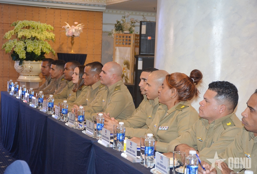 Các sĩ quan trẻ Bộ các Lực lượng vũ trang cách mạng Cuba dự tọa đàm.