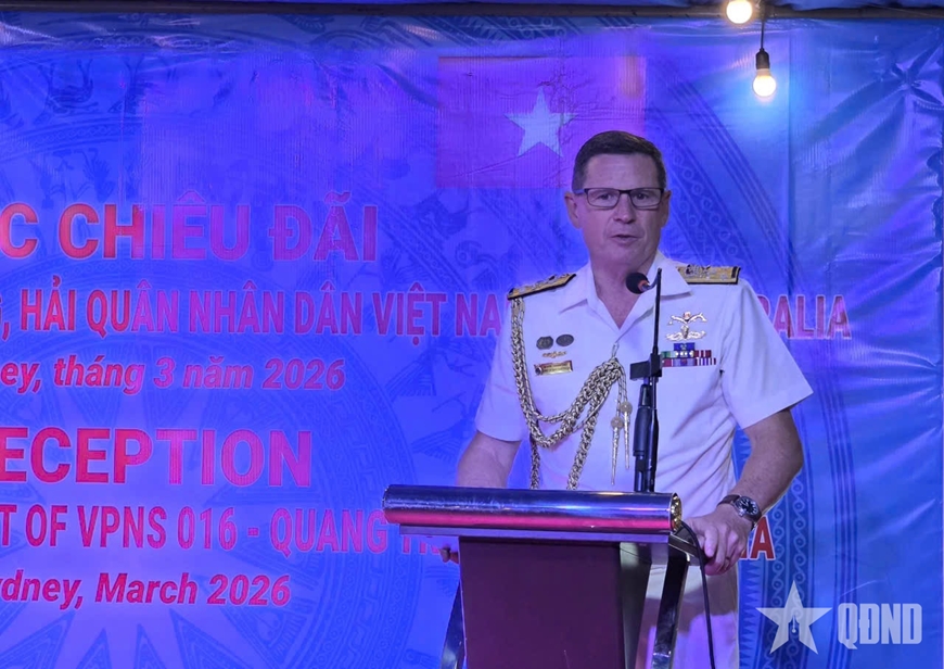 Phát biểu tại tiệc chiêu đãi, Chuẩn Đô đốc Nguyễn Đình Hùng trân trọng chuyển lời chúc mừng tốt đẹp nhất của Phó đô đốc Trần Thanh Nghiêm, Tư lệnh Hải quân nhân dân Việt Nam tới Phó đô đốc Mark Hammond và toàn thể sĩ quan, thủy thủ Hải quân Hoàng gia Australia nhân dịp kỷ niệm 125 năm Ngày thành lập (1-3-1901 / 1-3-2026); chúc Hải quân Hoàng gia Australia ngày càng phát triển lớn mạnh; đóng góp tích cực vào duy trì hòa bình, ổn định và phát triển thịnh vượng trong khu vực.
