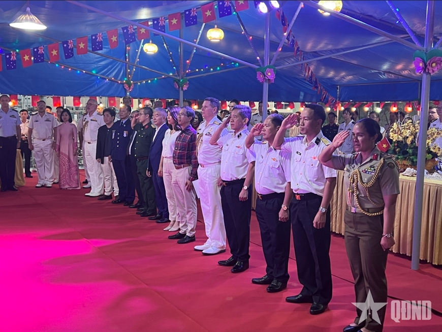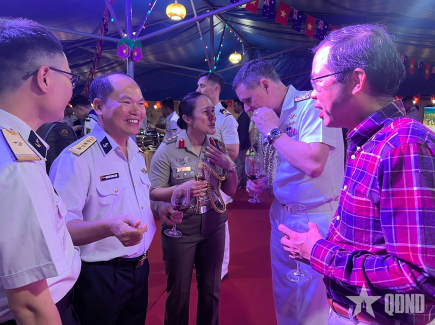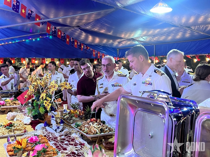 Đại sứ đặc mệnh toàn quyền nước Cộng hòa xã hội chủ nghĩa Việt Nam tại Australia Phạm Hùng Tâm, đại diện các cơ quan chức năng Australia, hải quân các nước tham dự Lễ duyệt binh và Diễn tập Kakadu 2026, đại biểu cộng đồng người Việt Nam tại Australia và sĩ quan, thủy thủ đoàn công tác trên Tàu 016 - Quang Trung cùng tham dự tiệc chiêu đãi.