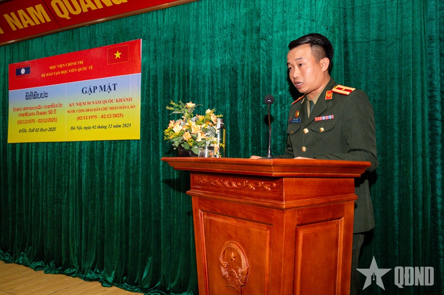 Tại buổi gặp mặt, Thiếu tá Phayvanh, Trưởng đoàn học viên QĐND Lào phát biểu bày tỏ lòng biết ơn sâu sắc đối với Đảng, Nhà nước và nhân dân Việt Nam, đặc biệt là sự giúp đỡ lớn lao, chí tình, chí nghĩa của QĐND Việt Nam trong suốt chiều dài cuộc đấu tranh giải phóng dân tộc và xây dựng đất nước.