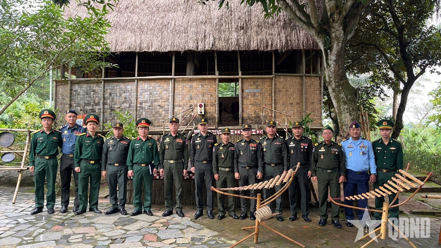 | Cán bộ, học viên Quân đội Hoàng gia Campuchia tham quan, học tập, tìm hiểu văn hóa Việt Nam tại Làng Văn hóa các dân tộc Việt Nam tại Hà Nội. |