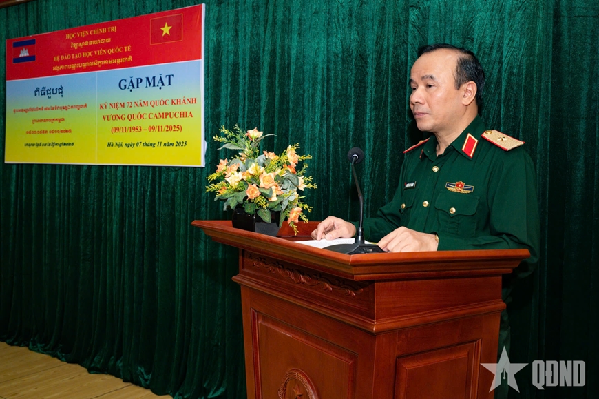 Nhân kỷ niệm 72 năm Quốc khánh Vương quốc Campuchia và Ngày thành lập Quân đội Hoàng gia Campuchia, Thiếu tướng, PGS, TS Nguyễn Huy Hoàng bày tỏ vui mừng trước những thành tựu quan trọng mà nhân dân và Quân đội Hoàng gia Campuchia đã đạt được trong sự nghiệp xây dựng và bảo vệ đất nước; chúc tình hữu nghị Việt Nam - Campuchia phát triển ngày càng tốt đẹp; chúc mừng kết quả học tập, rèn luyện của học viên Campuchia trong thời gian qua.