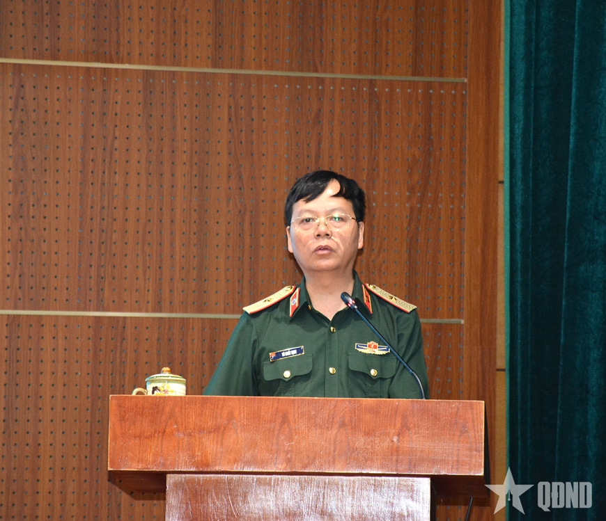| Thiếu tướng, PGS, TS Vũ Nhất Định phát biểu giao nhiệm vụ cho Bệnh viện dã chiến cấp 2 số 8. |