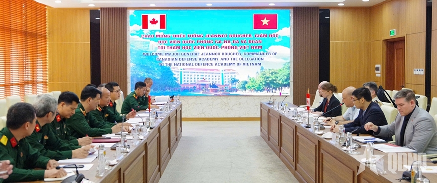 Tại buổi làm việc, hai đồng chí trưởng đoàn khẳng định, hợp tác quốc phòng giữa Việt Nam và Canada được Nhà nước và Quân đội hai nước đặc biệt chú trọng, ngày càng phát triển và trở thành một trong những trụ cột trong mối quan hệ hữu nghị, hợp tác. Hợp tác quốc phòng giữa hai nước nhằm phát triển quan hệ trên cơ sở bình đẳng, tôn trọng lẫn nhau góp phần củng cố quốc phòng - an ninh, giữ vững độc lập, chủ quyền, thống nhất và toàn vẹn lãnh thổ của mỗi nước, góp phần giữ gìn môi trường hòa bình, ổn định, cùng phát triển. Hai trưởng đoàn đã giới thiệu khái quát những nội dung cơ bản về kết quả thực hiện nhiệm vụ của hai học viện những năm gần đây; trao đổi về kinh nghiệm quản lý, giáo dục - đào tạo, nghiên cứu khoa học của mỗi học viện.