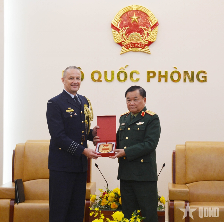 Thượng tướng Hoàng Xuân Chiến chúc mừng Đại tá Michael Jansen đã hoàn thành xuất sắc nhiệm kỳ công tác tại Việt Nam, đồng thời chào mừng Đại tá Alana Burkitt nhận công tác trên cương vị Tùy viên Quốc phòng Australia tại Việt Nam.