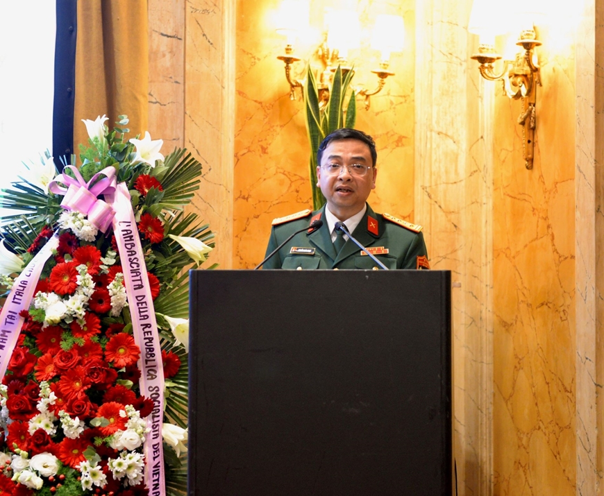 | Đại tá Nguyễn Đoàn Ngọc, Tùy viên Quốc phòng Việt Nam tại Italy phát biểu tại buổi lễ. |