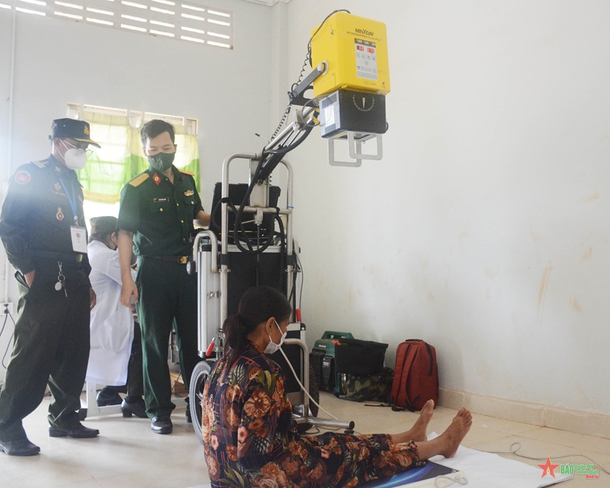 Trong đợt khám bệnh miễn phí đợt này cho người dân Campuchia, Cục Quân y đã chủ trì phối hợp với các đơn vị triển khai nhiều máy móc trang thiết bị y tế hiện đại trên các lĩnh vực: Xét nghiệm Covid-19; nội khoa; ngoại khoa; khám nhi; X-quang; siêu âm; điện tim; xét nghiệm… Tại các bàn khám bệnh, cấp thuốc miễn phí, đội ngũ y, bác sĩ đã tận tình khám bệnh, cấp thuốc miễn phí cho người dân Campuchia. Mọi người dân đến khám bệnh đều được Cục Quân y tặng quà.