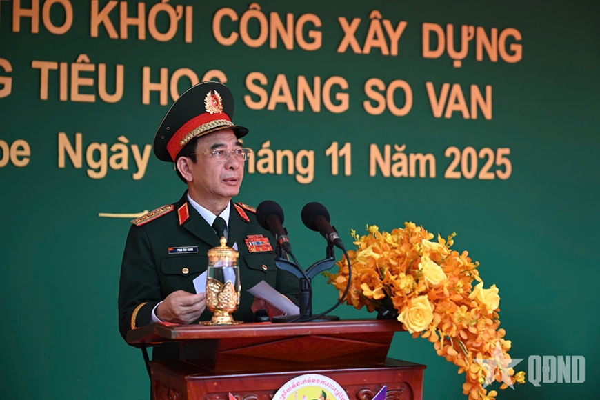 “Việc xây dựng công trình hữu nghị Trường Tiểu học Sang Sovan chính là minh chứng rõ ràng tình hữu nghị không chỉ thể hiện trong hợp tác quốc phòng - an ninh mà còn trong việc chăm lo, bồi dưỡng cho thế hệ mai sau. Tôi tin tưởng rằng, sau khi hoàn thành, ngôi trường này sẽ là nơi gieo những hạt giống tri thức, nuôi dưỡng ước mơ của các em học sinh, đồng thời là cây cầu bền vững nối liền tình cảm giữa quân đội và nhân dân hai nước Việt Nam - Campuchia. Chúc Trường Tiểu học Sang Sovan sớm hoàn thành đưa vào sử dụng, thầy trò Nhà trường gặt hái nhiều thành công trong công tác đào tạo, giảng dạy và trở thành ngôi trường điểm của địa phương”, Đại tướng Phan Văn Giang phát biểu.