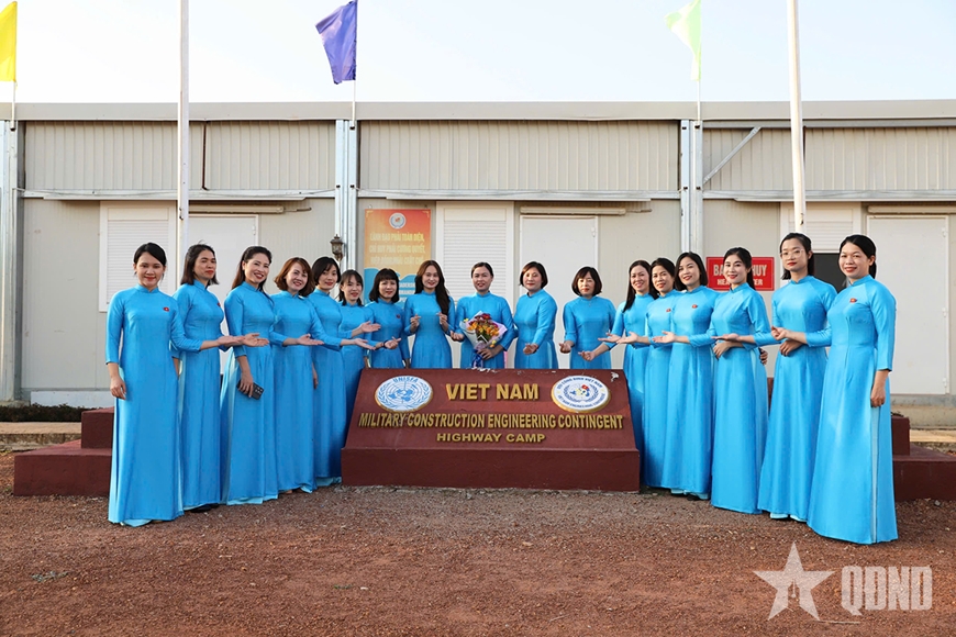 Thay vì những bài phát biểu trang trọng, các chị em chọn cách lan tỏa sâu sắc hình ảnh Việt Nam đất nước, con người qua những tà áo dài màu thiên thanh thướt tha dưới sắc nắng rực rỡ của châu Phi, biến buổi lễ thành một bức tranh văn hóa sống động, xóa đi khoảng cách địa lý và khẳng định bản sắc giữa Phái bộ UNISFA.