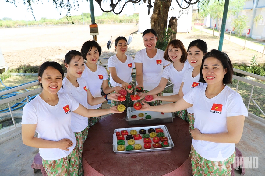 Chị em Đội Công binh số 4 làm bánh nhân dịp kỷ niệm Ngày Phụ nữ Việt Nam 20-10. |