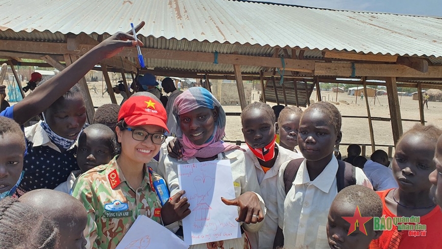 Cũng như các lần hoạt động CIMIC trước đây, những người lính quân y mũ nồi xanh Việt Nam đã tổ chức và cùng tham gia với các bạn nhỏ nhiều hoạt động, trò chơi thú vị như kéo co, đá cầu, đá bóng… Các nữ quân nhân của 2 bệnh viện còn hướng dẫn các bạn học sinh Nam Sudan vẽ những bức tranh đơn giản, lưu giữ ký ức tuổi thơ.