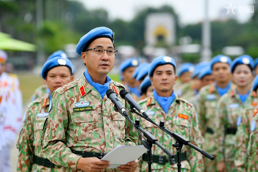Trước anh linh của Bác, Thiếu tướng Phạm Mạnh Thắng, Cục trưởng Cục Gìn giữ hòa bình Việt Nam đã báo cáo những kết quả tích cực trong nhiệm kỳ công tác của Đội Công binh số 3 thực hiện nhiệm vụ gìn giữ hòa bình tại Phái bộ An ninh lâm thời của Liên hợp quốc ở khu vực Abyei (UNISFA) và Bệnh viện dã chiến cấp 2 số 6 thực hiện nhiệm vụ tại Phái bộ gìn giữ hòa bình Liên hợp quốc ở Nam Sudan (UNMISS).