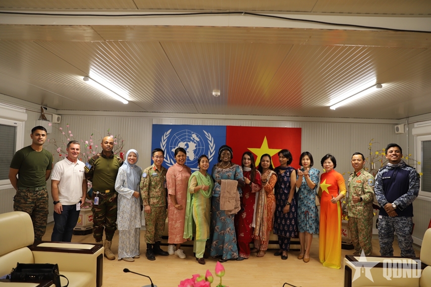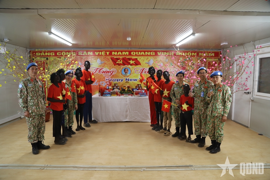 Công tác chuẩn bị Tết được triển khai chu đáo, rộn ràng từ khá sớm. Tận dụng thời gian nghỉ phép trong nước, các cán bộ, chiến sĩ đã mang theo gạo nếp, lá dong cùng nhiều thực phẩm cần thiết để gói bánh chưng, bánh tét. Kết hợp với những vật liệu sẵn có tại địa bàn Phái bộ, không gian sinh hoạt được trang trí gọn gàng, ấm cúng, mang đậm hương vị Tết Việt. Những ngày đầu năm mới, các hoạt động trò chơi dân gian như kéo co, nhảy bao bố, bịt mắt đập niêu, hát karaoke... được tổ chức sôi nổi, mang đến không khí vui tươi, ấm áp, đậm bản sắc văn hóa Việt Nam.